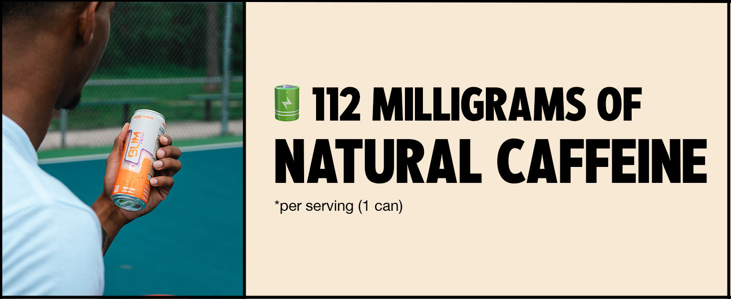 BUM Energy contains 112mg of caffeine per serving (1 can).